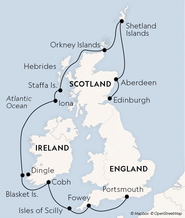 Uncover the hidden side of well-known isles on a journey that encompasses Britian, Ireland, and Scotland. Enter coastal villages by Zodiac and land on remote beaches. Witness prehistory juxtaposed with the present. Navigate through a picturesque sea cave and observe colonies of migratory seabirds. Stroll charming, remote towns and mingle with locals in cozy pubs throughout the land.