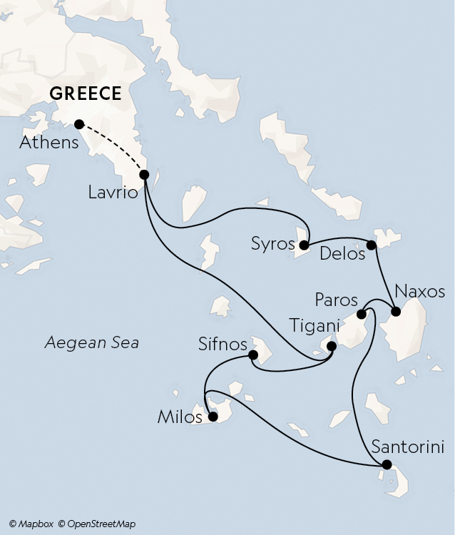 Legends come to life in the Greek Isles, where sun-drenched shores hold ancient relics and the rich cultural traditions of an illustrious civilization. Embark on an Aegean odyssey designed as part of an exclusive wine collaboration with the experts at Food & Wine magazine, and discover Cycladic islands both storied and secret, from historic Delos to laid-back Naxos and Paros.