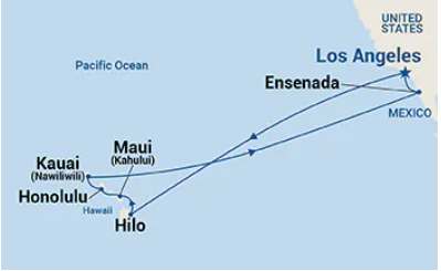 Los Angeles, California, USA > Kauai (Nawiliwili), Hawaii > Kahului, Hawaii > Hilo, Hawaii > Honolulu, Hawaii > Ensenada, Mexico > Los Angeles, USA, CaliforniaInclusions