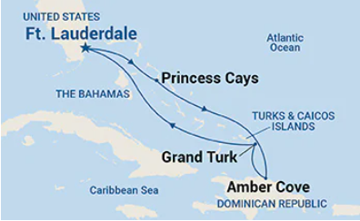 Ft. Lauderdale, Florida, USA > Princess Cays, Bahamas > Amber Cove, Dominican Republic > Grand Turk, Turks & Caicos > Ft. Lauderdale, Florida, USAInclusions