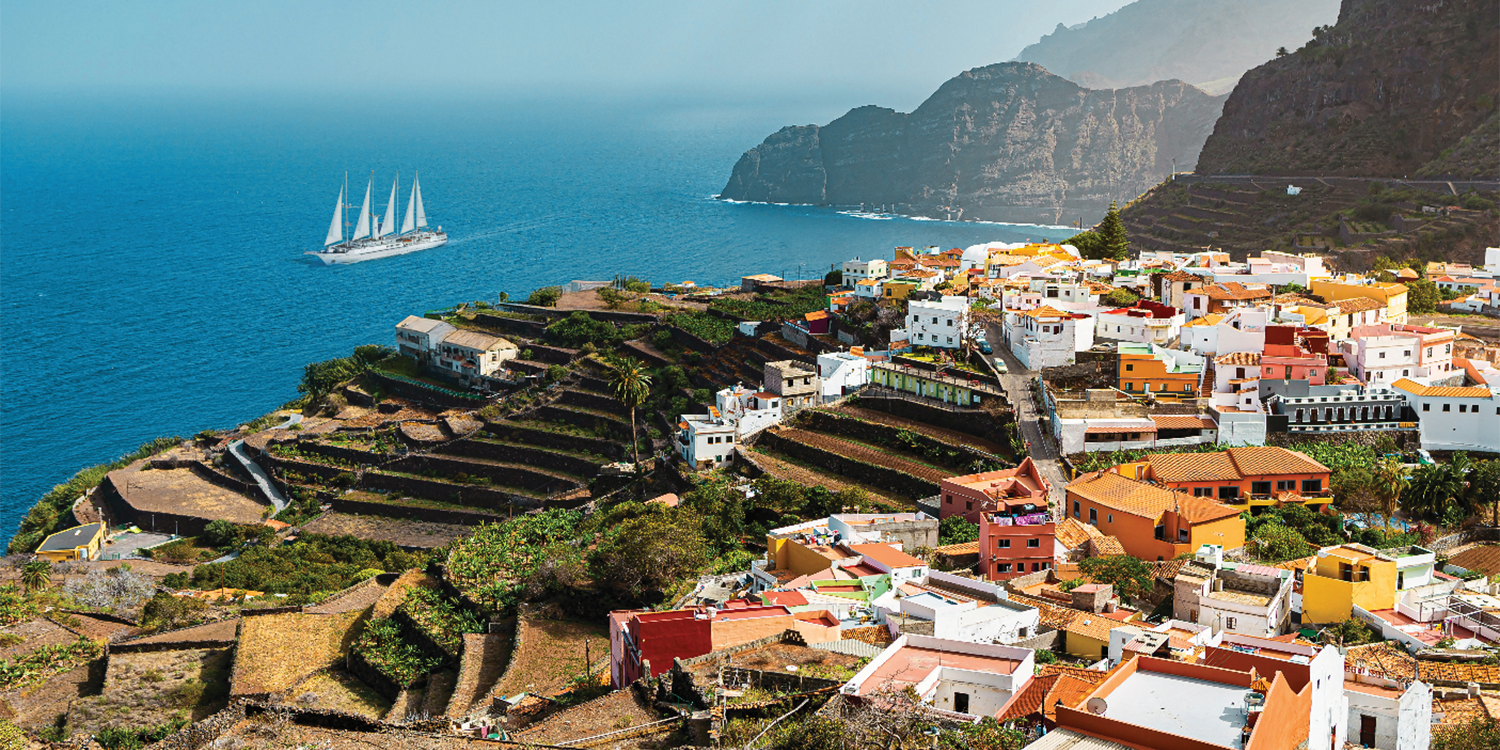 Cruise for 10 days through the dramatic volcanic landscapes of the Canary Islands aboard the Windstar Cruises yacht, starting and ending in Santa Cruz de Tenerife. Explore sun-soaked treasures such as La Palma, Lanzarote’s “Mountains of Fire,” and Funchal’s wine heritage while sampling poncha, wandering cobbled colonial towns and soaking in island magic.